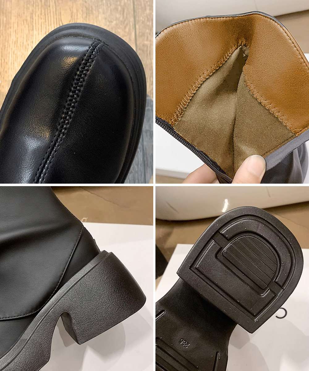 厚底 ショート ブーツ 太ヒール 韓国 靴