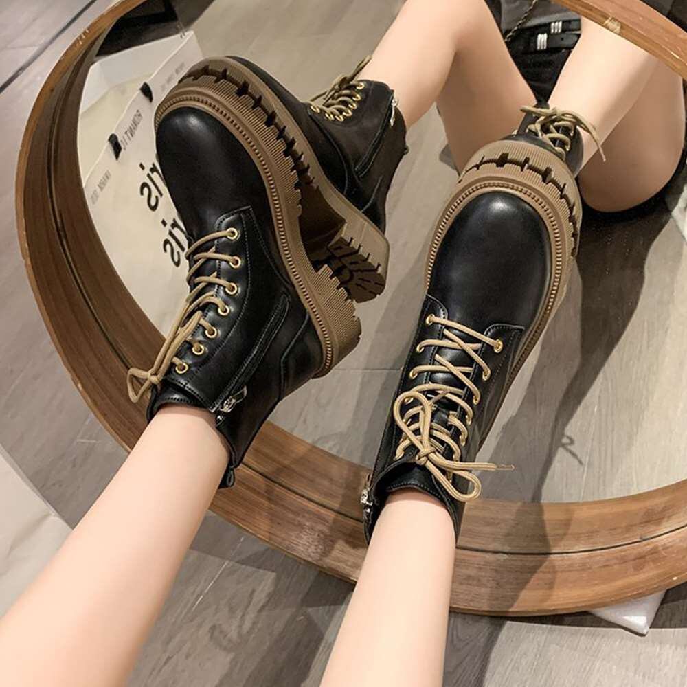 厚底 ショート ブーツ 韓国 編み上げ ブーツ