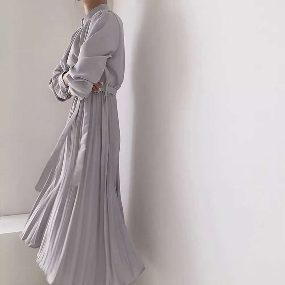 ロング ワンピース 長袖 プリーツ ワンピ 韓国