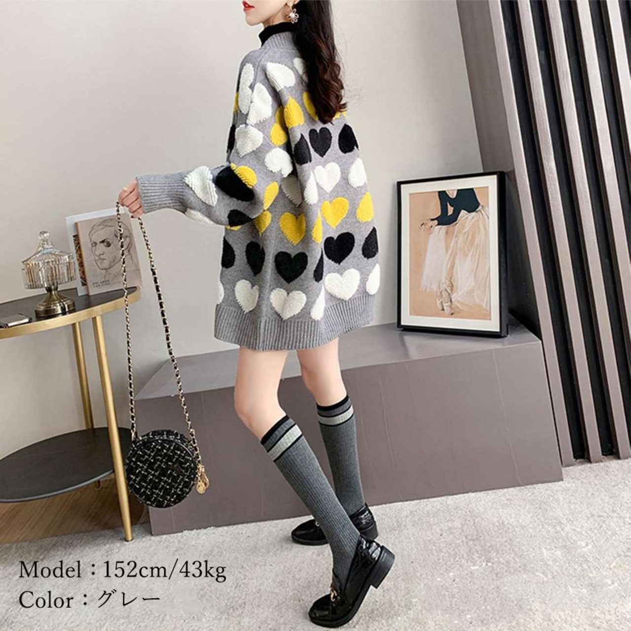 明るい配色のハート柄が浮き出るもこもこボアでアクセントになるニットカーディガン