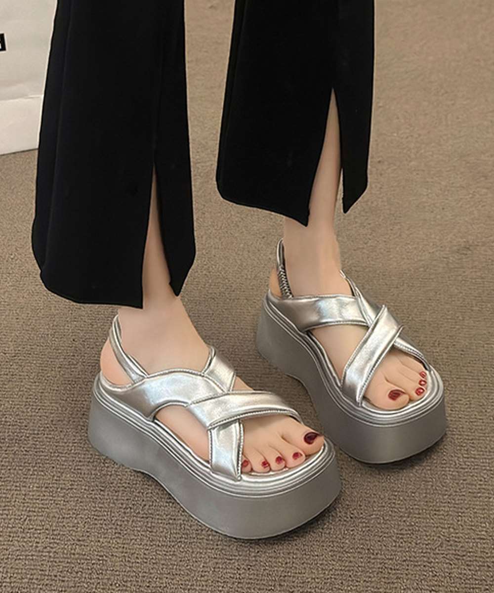 シンプルでリラックスしたデザインが特徴の厚底サンダル