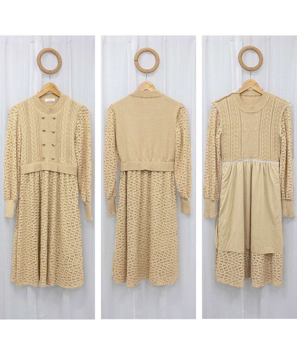 かわいらしさと清楚さを兼ね備えたレイヤード風ニットワンピース