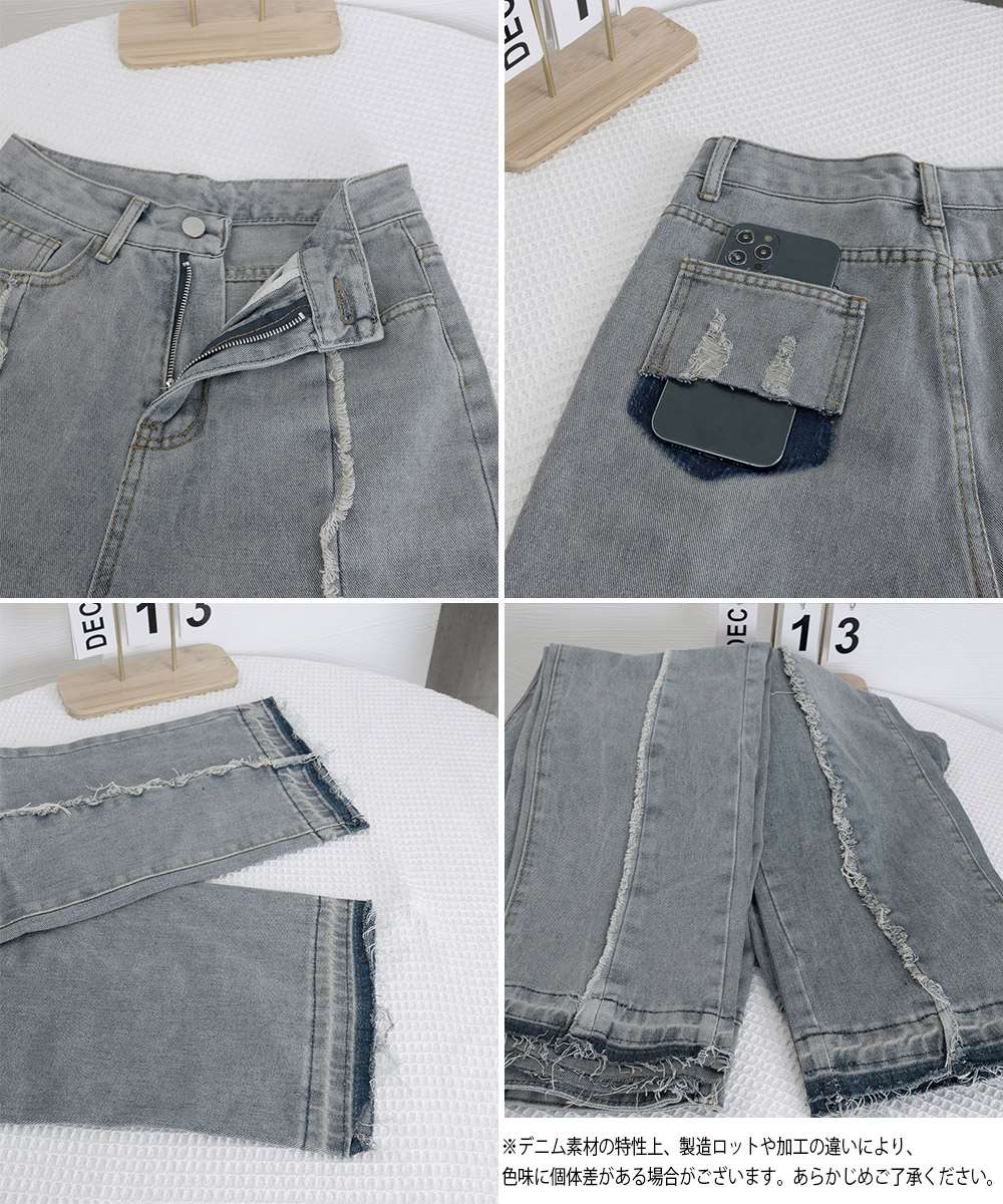 キーワード:細見えデニムレトロ 切りっぱなしズボン カジュアルジーンズ