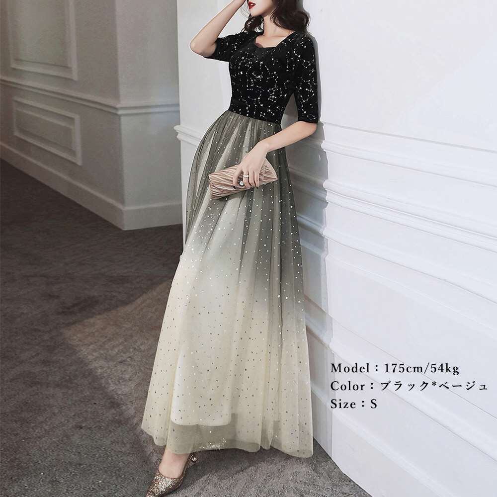 グラデーション パーティ ドレス ロング丈