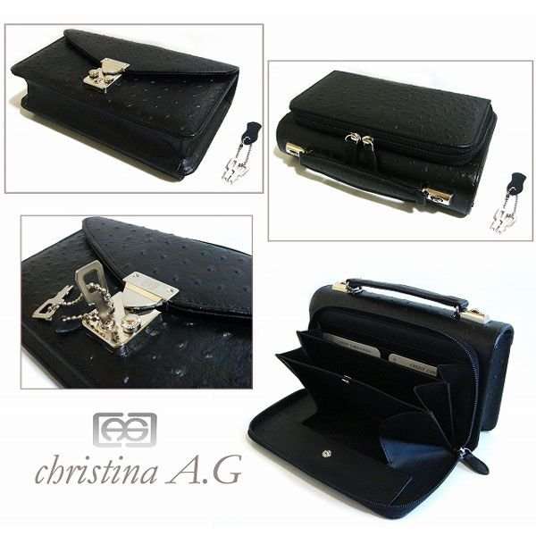 christina.A.G オーストリッチ型押し 牛革 セカンドバッグ 鍵付き