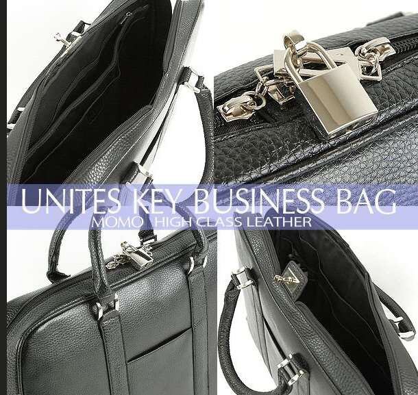 MOMO エンボス加工 牛床革 ビジネスバッグ 南京錠付 ブリーフケース