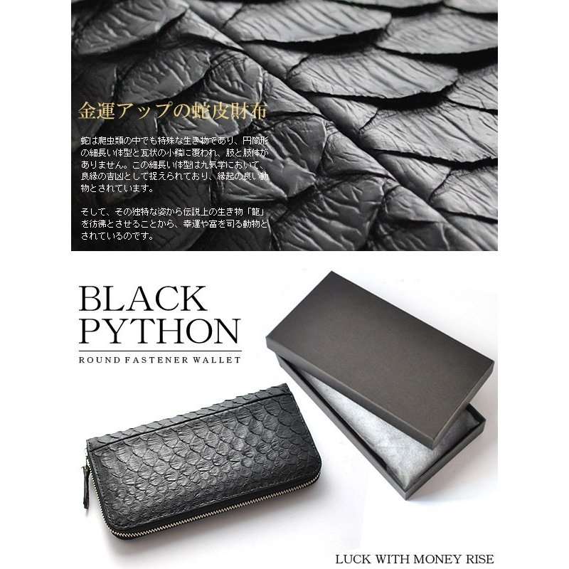 金運 財布 ブラックパイソン ラウンドファスナー 長財布 No.1671P-BK ユニセックス 蛇革RF 長財布