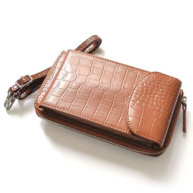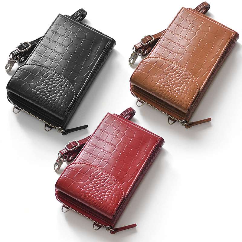 牛革 クロコ型押し 財布 機能付き スマートフォン ポーチ No.3170 レディース カラバリ 牛革 ポーチ
