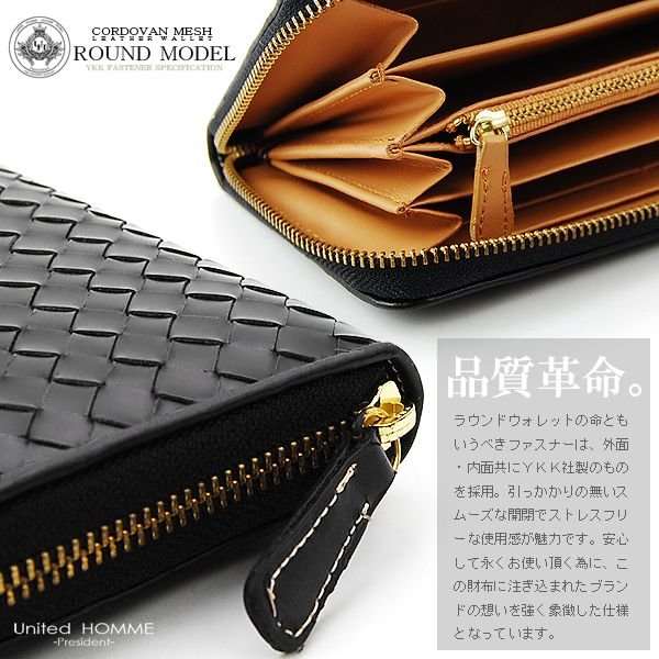 united HOMME 高級 馬革メッシュ×牛革 ラウンドファスナー 長財布 メンズ ウォレット