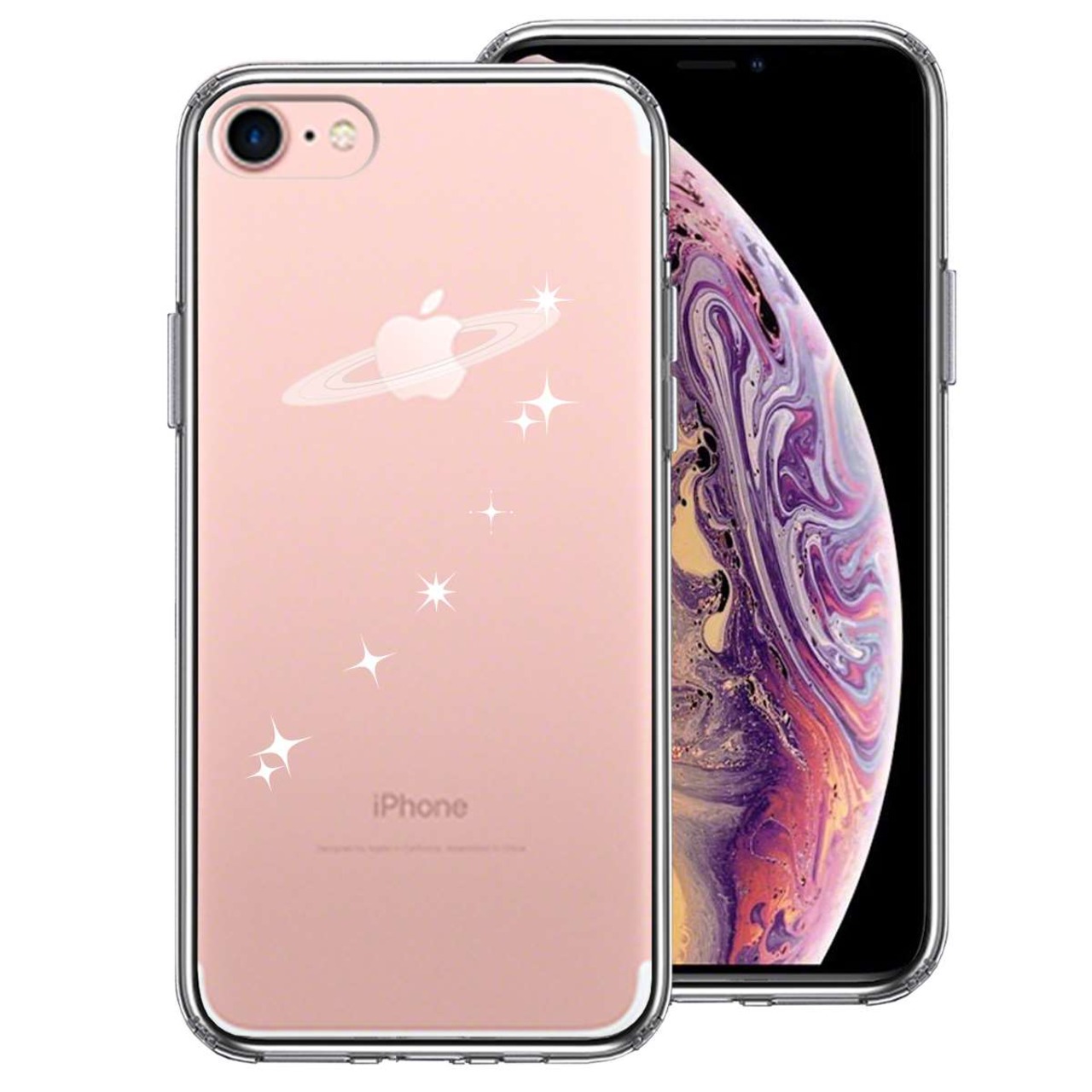 iPhone7 側面ソフト 背面ハード ハイブリッド クリア ケース 天の川 流れ星