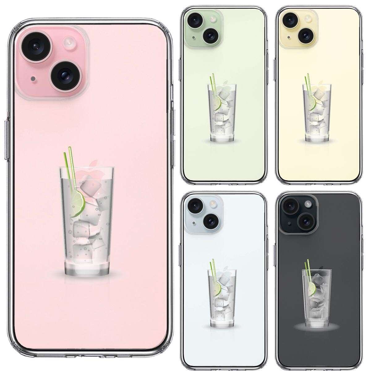 iPhone15 側面ソフト 背面ハード ハイブリッド クリア ケース apple リンゴ カクテル