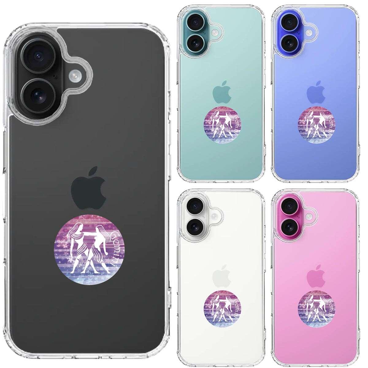 iPhone16 側面ソフト 背面ハード ハイブリッド クリア ケース 星座 ふたご座 双子座 Gemini