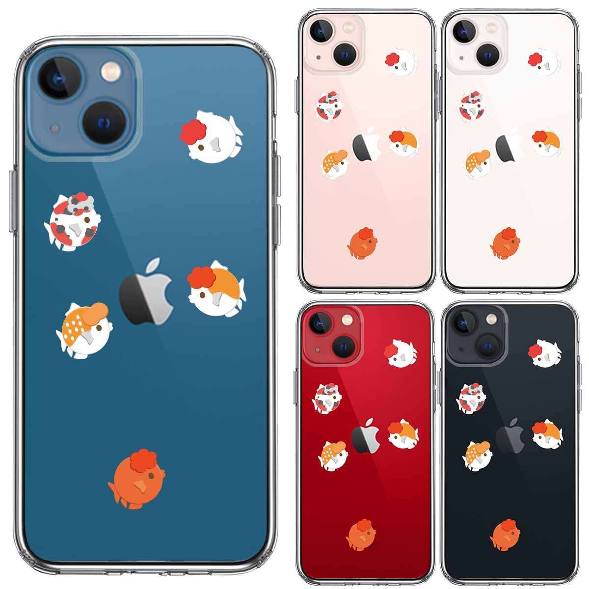 iPhone13 側面ソフト 背面ハード ハイブリッド クリア ケース 金魚 らんちゅう