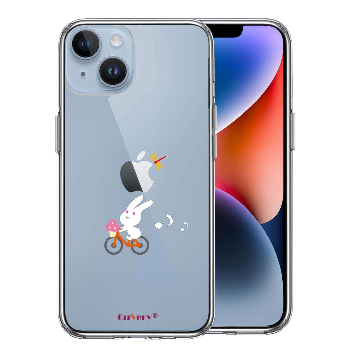 iPhone14 側面ソフト 背面ハード ハイブリッド クリア ケース チャリ うさぎ ラビット ぴょんぴょん