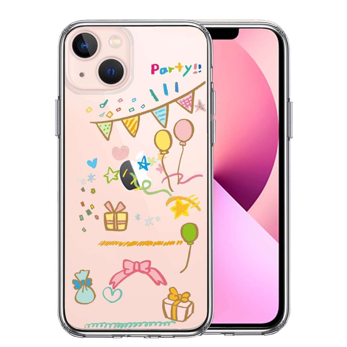 iPhone13mini 側面ソフト 背面ハード ハイブリッド クリア ケース party パーティー