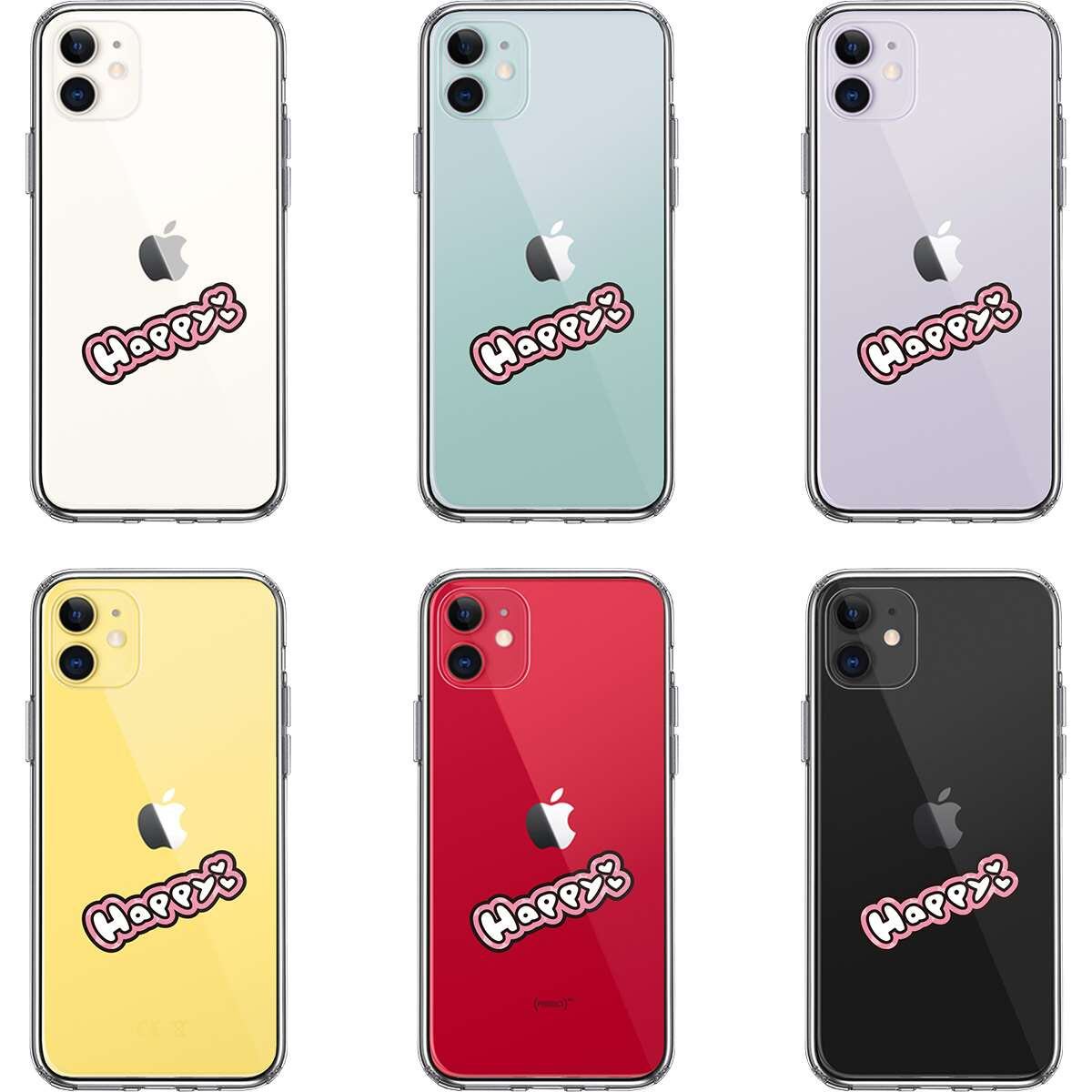 iPhone11 側面ソフト 背面ハード ハイブリッド クリア ケース カバー happy 幸せ ハッピー
