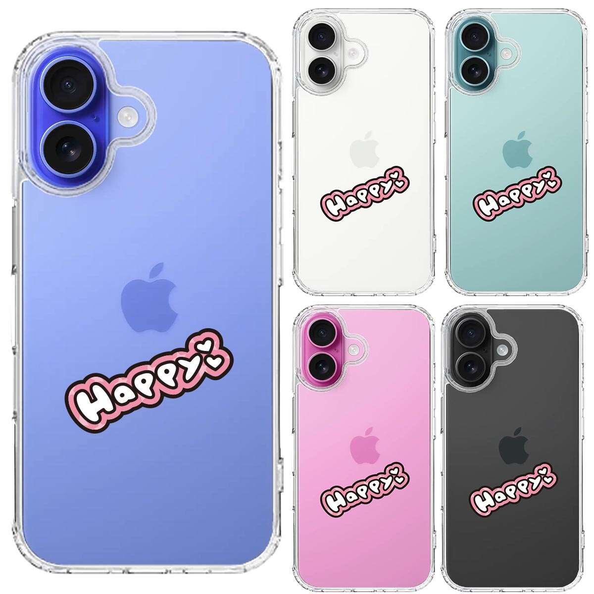 iPhone16 側面ソフト 背面ハード ハイブリッド クリア ケース happy 幸せ ハッピー