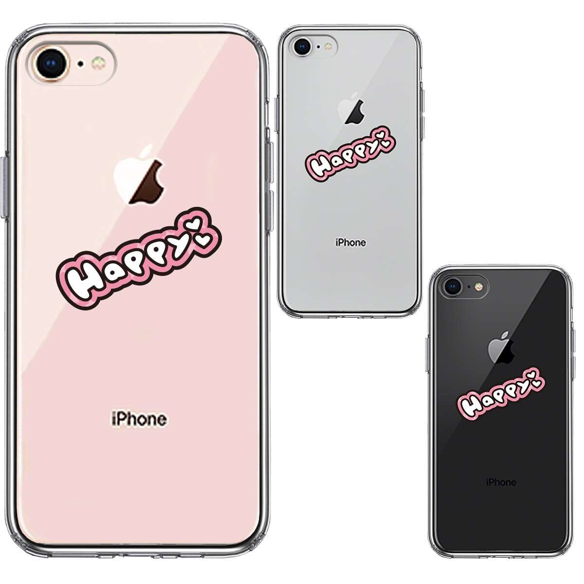 iPhone7 iPhone8 兼用 側面ソフト 背面ハード ハイブリッド クリア ケース happy 幸せ ハッピー