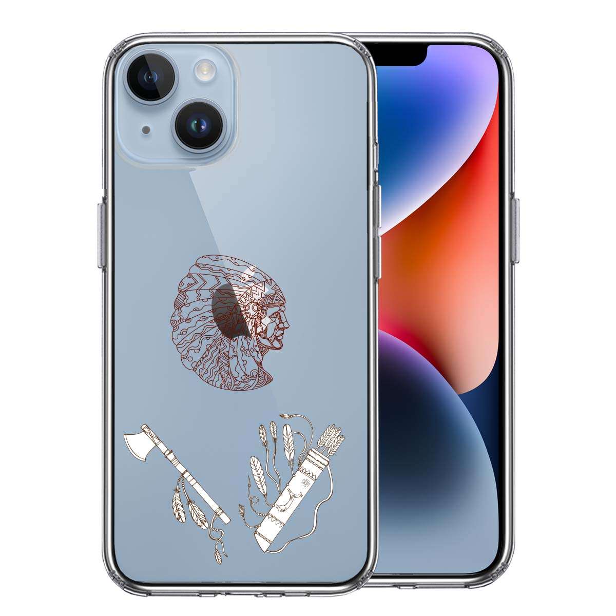 iPhone 14 Plus 側面ソフト 背面ハード ハイブリッド クリア ケース ネイティブアメリカン