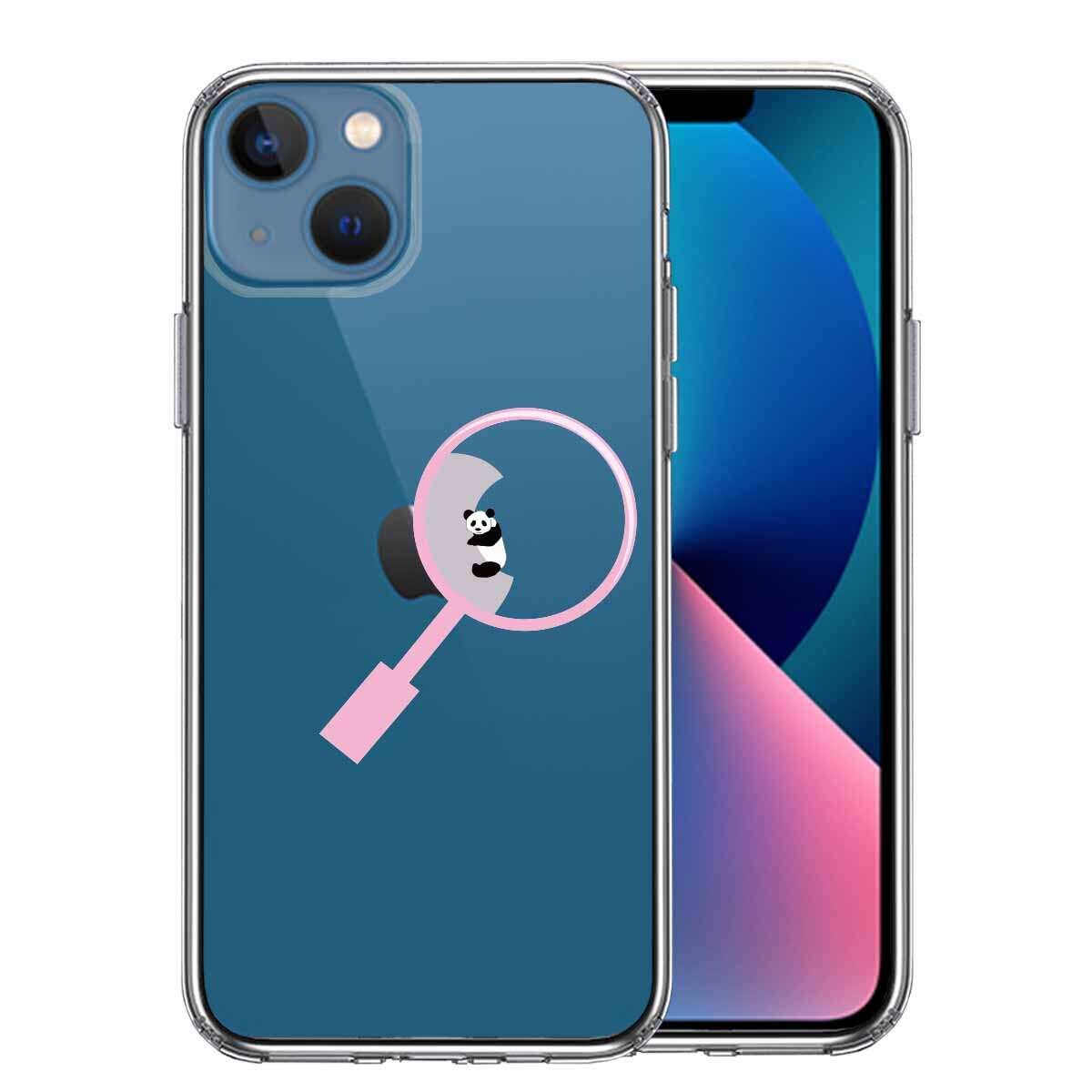 iPhone13mini 側面ソフト 背面ハード ハイブリッド クリア ケース よく見たら パンダ 抱きついてた!