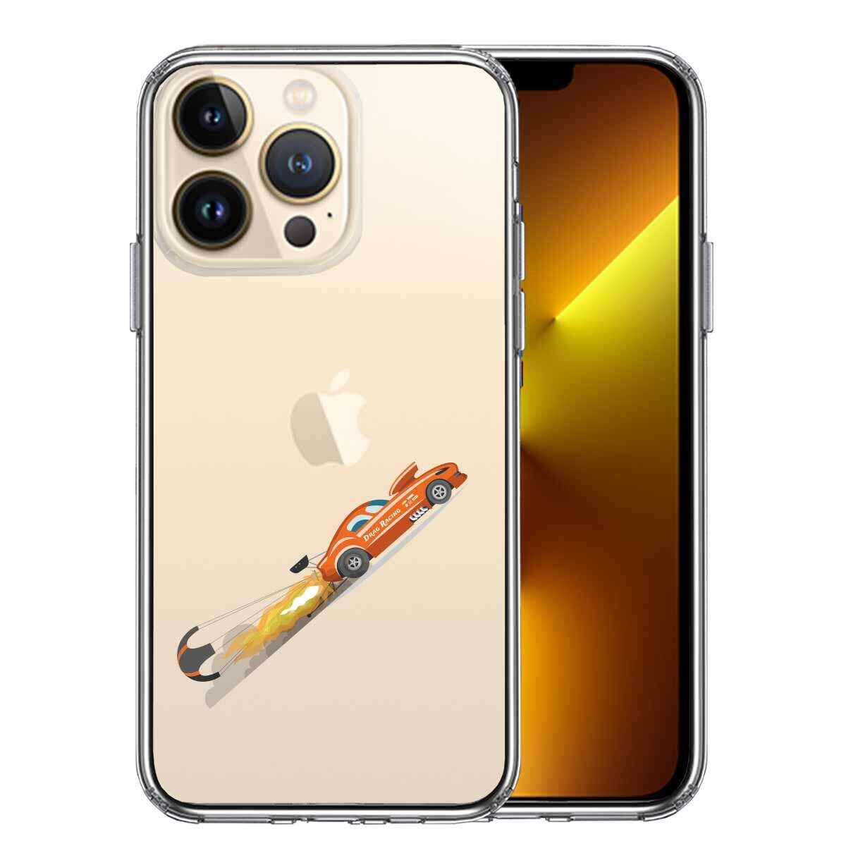 iPhone13 Pro 側面ソフト 背面ハード ハイブリッド クリア ケース レーシングカー 車 オレンジ