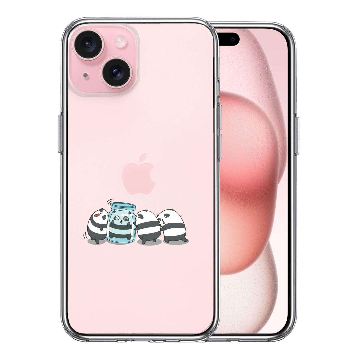 iPhone 15 Plus 側面ソフト 背面ハード ハイブリッド クリア ケース カプセル パンダ