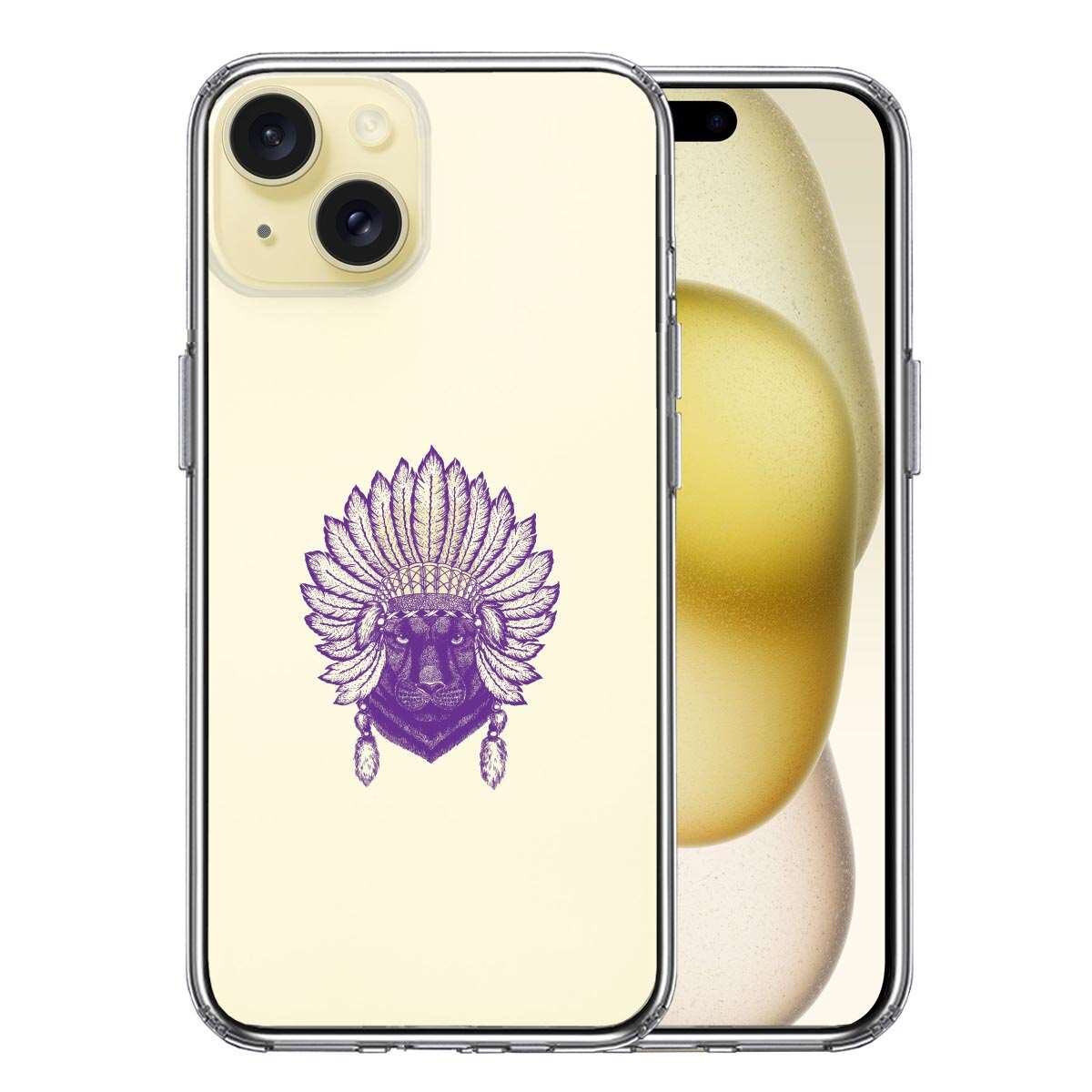 iPhone15 側面ソフト 背面ハード ハイブリッド クリア ケース ネイティブアメリカン ヒョウ 豹