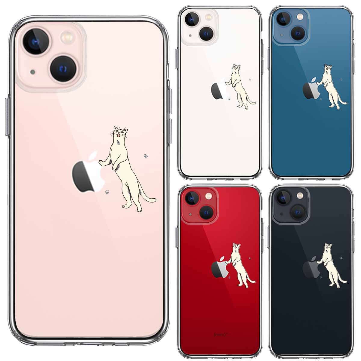 iPhone13mini 側面ソフト 背面ハード ハイブリッド クリア ケース にゃんこ 猫 ねこ