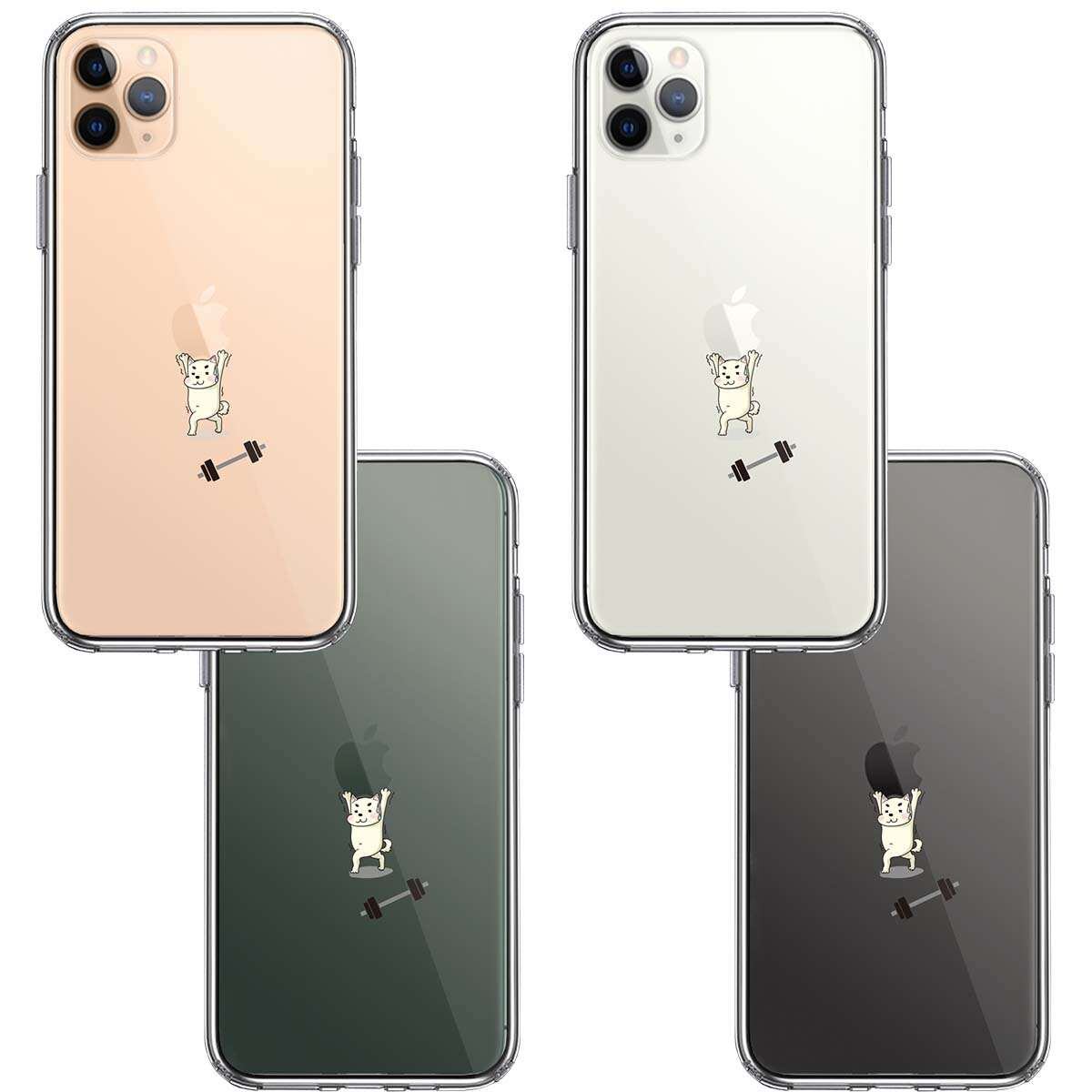 iPhone11pro 側面ソフト 背面ハード ハイブリッド クリア ケース わんこ 筋トレ ダンベル