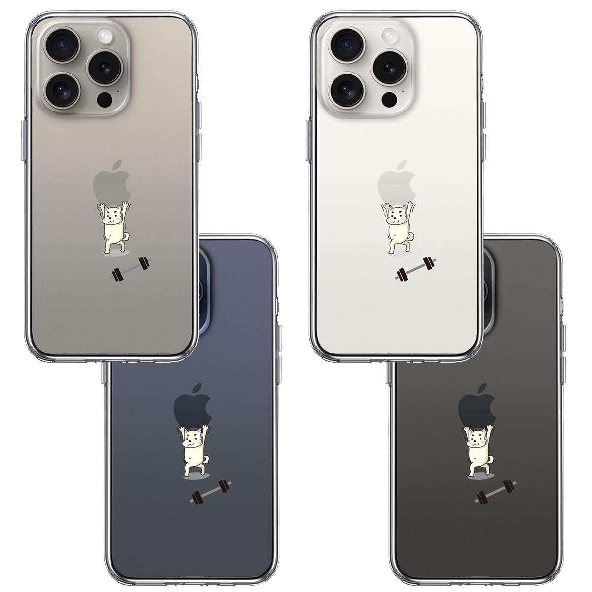 iPhone15 Pro 側面ソフト 背面ハード ハイブリッド クリア ケース わんこ 筋トレ ダンベル