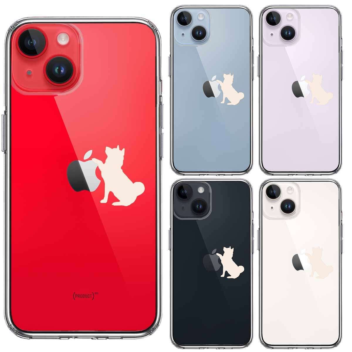 iPhone 14 Plus 側面ソフト 背面ハード ハイブリッド クリア ケース わんこ お手! ホワイト
