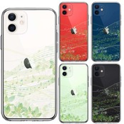 iPhone12mini 側面ソフト 背面ハード ハイブリッド クリア ケース 癒しの森 音符 デザイン