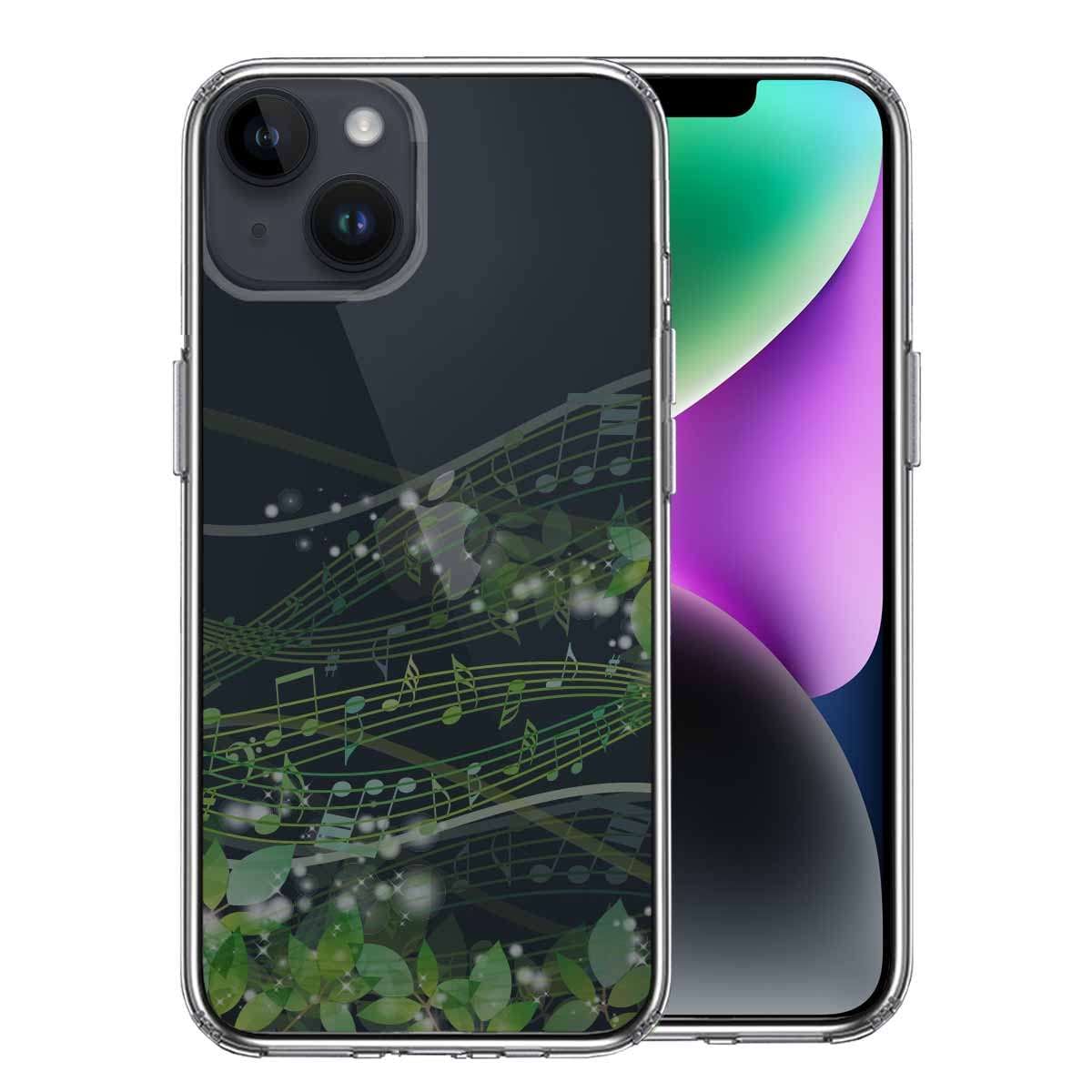 iPhone14 側面ソフト 背面ハード ハイブリッド クリア ケース 癒しの森 音符 デザイン