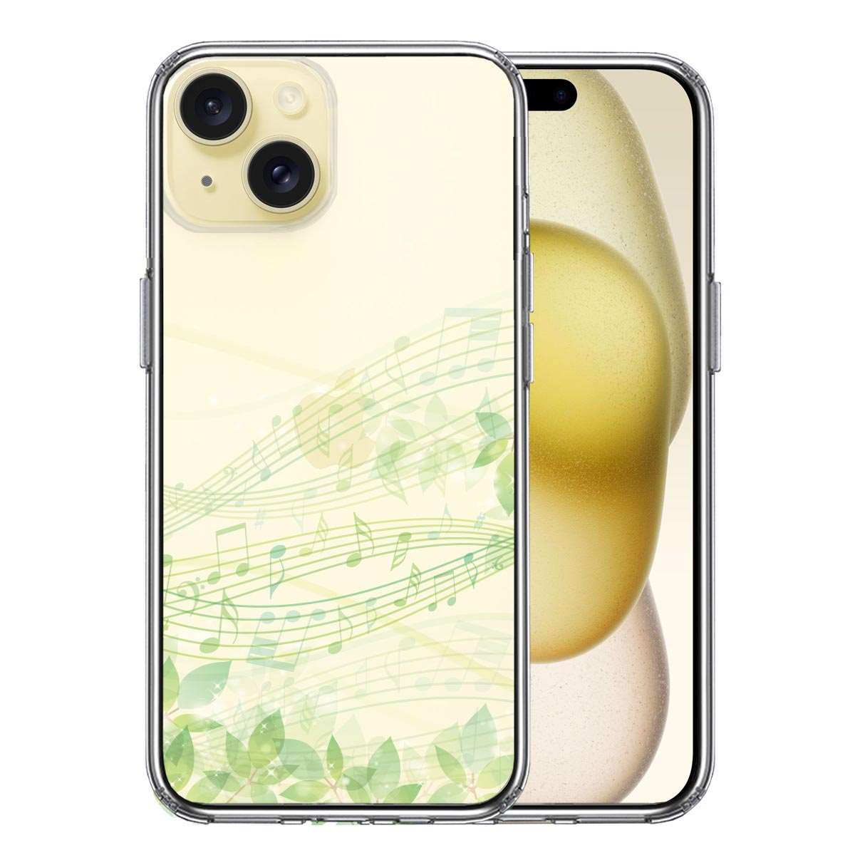 iPhone15 側面ソフト 背面ハード ハイブリッド クリア ケース 癒しの森 音符 デザイン