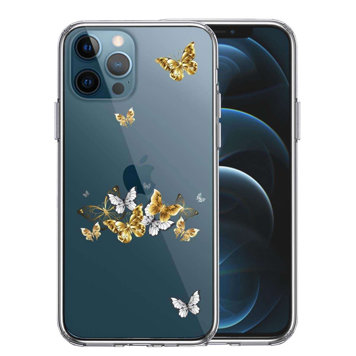 iPhone12 Pro 側面ソフト 背面ハード ハイブリッド クリア ケース 蝶々 ちょうちょう バタフライ