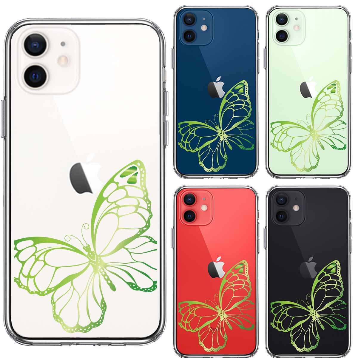 iPhone12mini 側面ソフト 背面ハード ハイブリッド クリア ケース 蝶 ちょうちょう バタフライ ゴールド 2