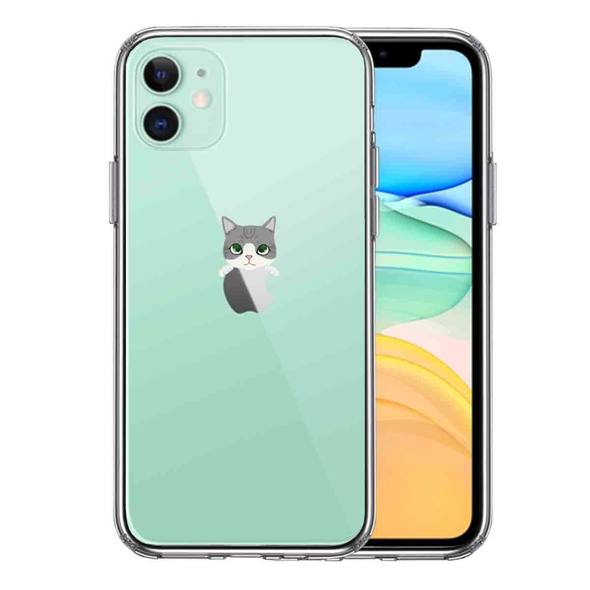 iPhone11 側面ソフト 背面ハード ハイブリッド クリア ケース カバー のっかり ネコ サバトラ
