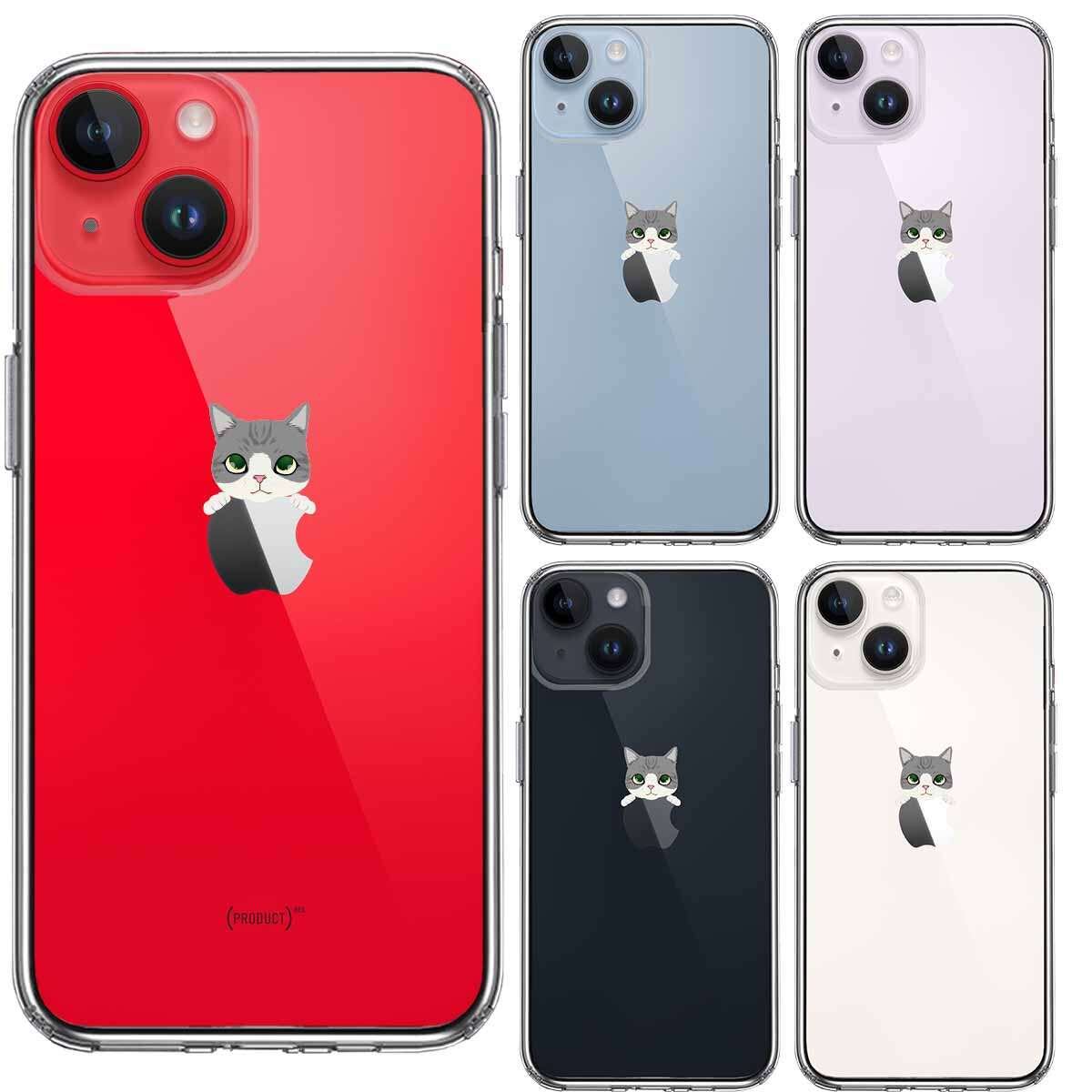 iPhone 14 Plus 側面ソフト 背面ハード ハイブリッド クリア ケース のっかり ネコ サバトラ