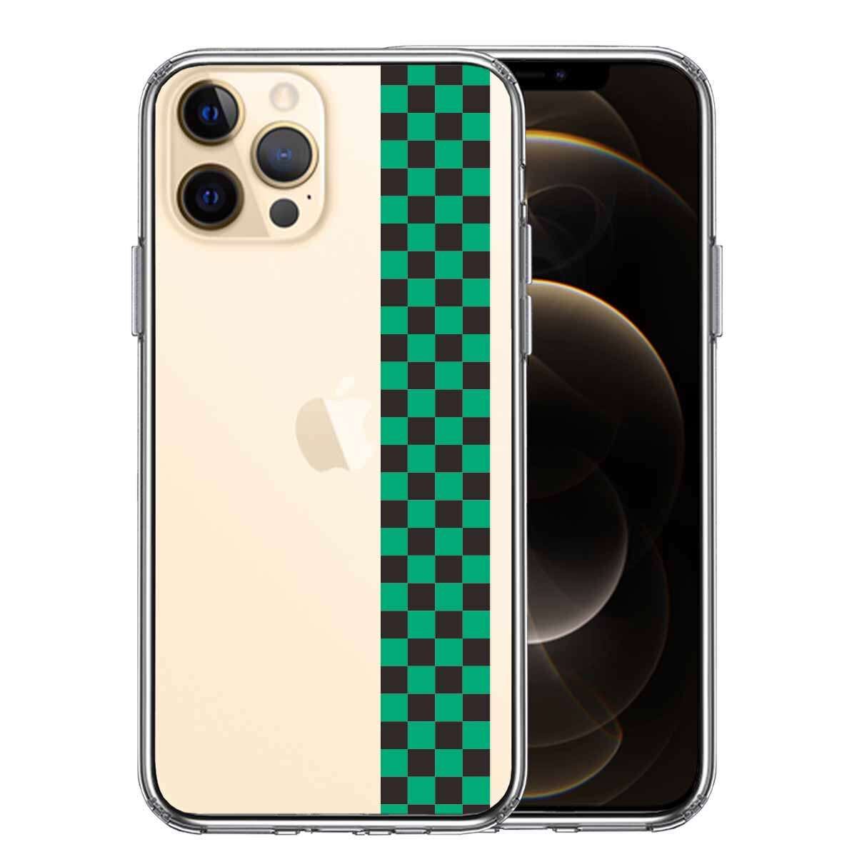 iPhone12 Pro 側面ソフト 背面ハード ハイブリッド クリア ケース 和柄 帯 市松 常盤緑 黒