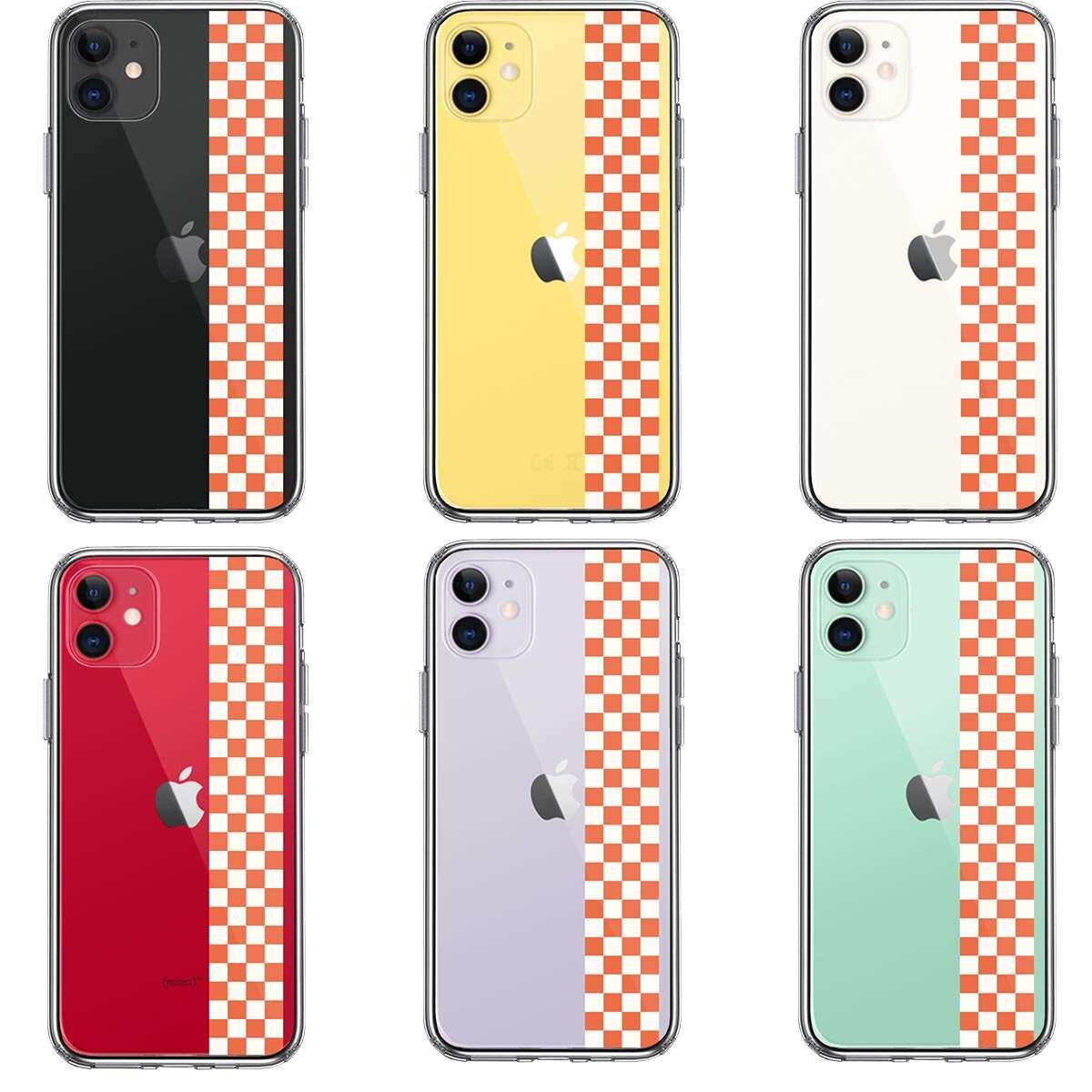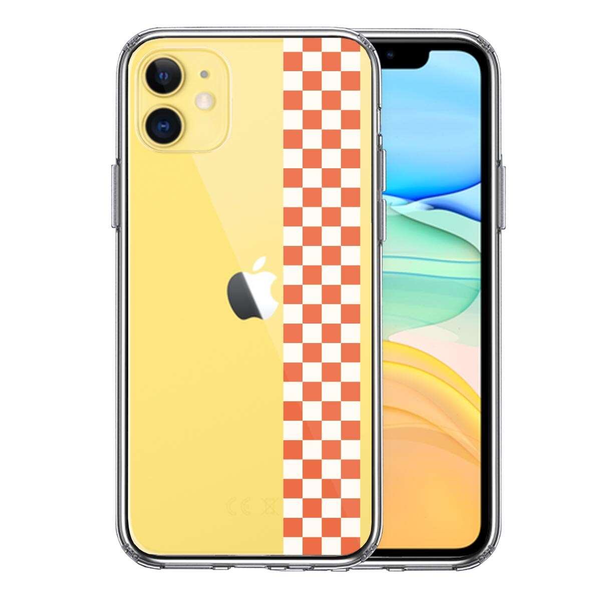 iPhone11 側面ソフト 背面ハード ハイブリッド クリア ケース 和柄 帯 市松 茶 極薄黄