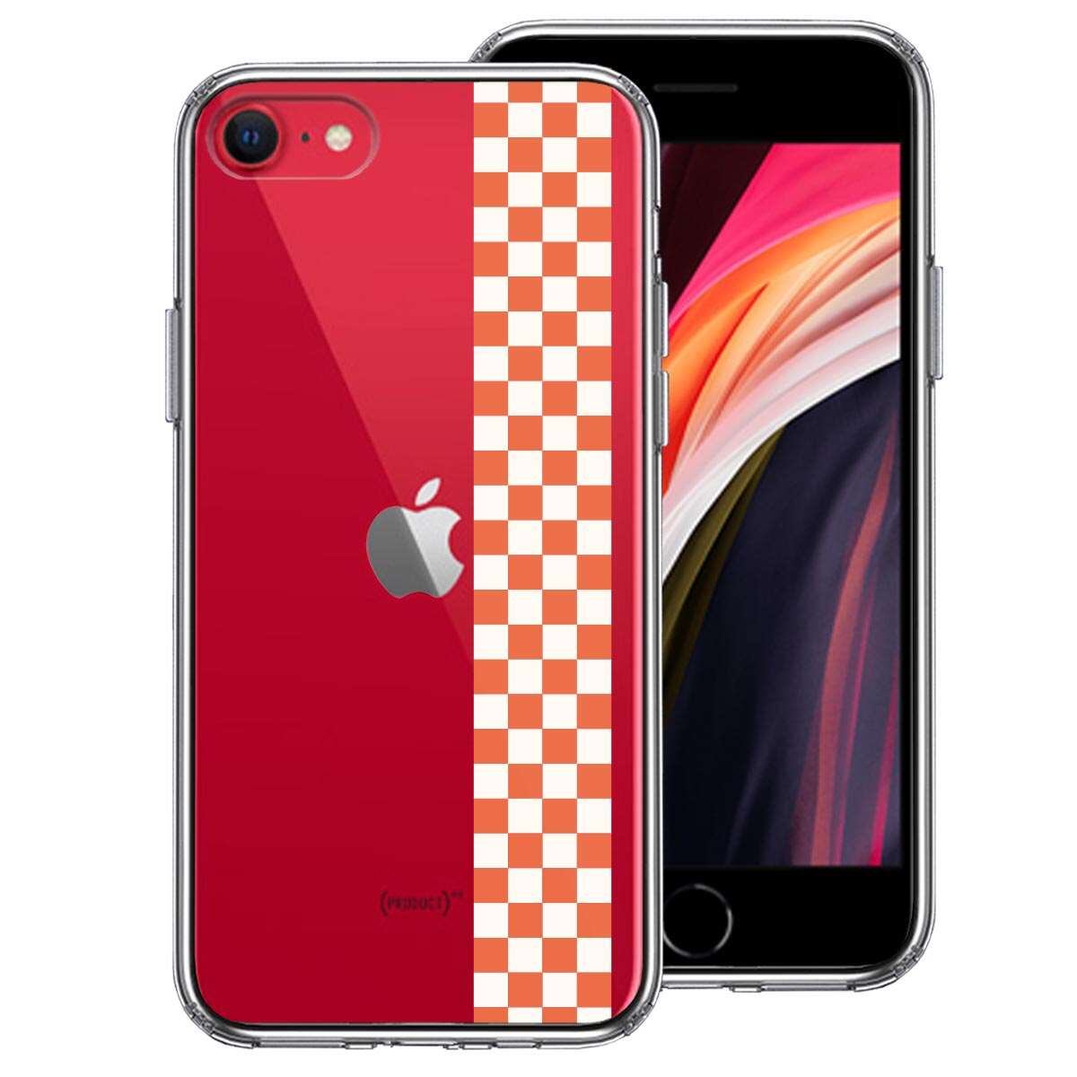 iPhoneSE(第3 第2世代) 側面ソフト 背面ハード ハイブリッド クリア ケース 和柄 帯 市松 茶 極薄黄