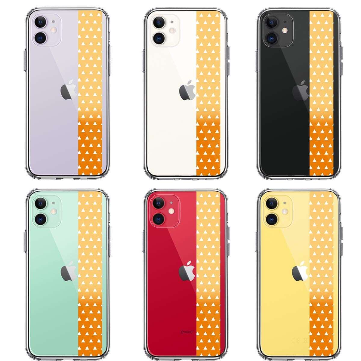 iPhone11 側面ソフト 背面ハード ハイブリッド クリア ケース 和柄 帯 鱗紋 うろこ紋 黄色 オレンジ