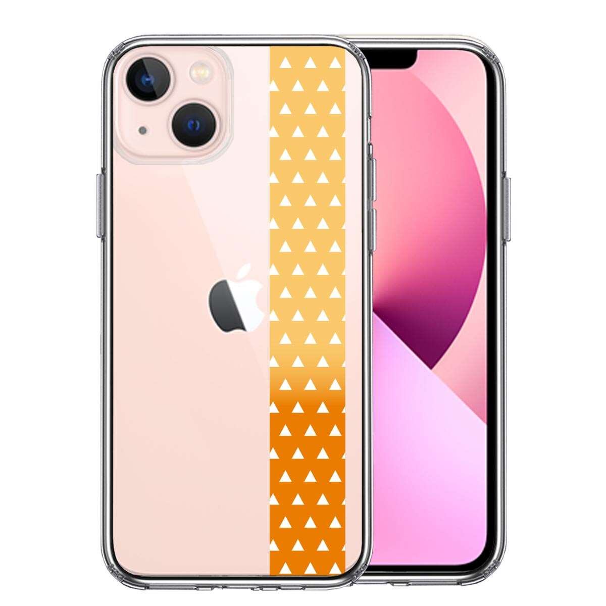 iPhone13 側面ソフト 背面ハード ハイブリッド クリア ケース 和柄 帯 鱗紋 うろこ紋 黄色 オレンジ