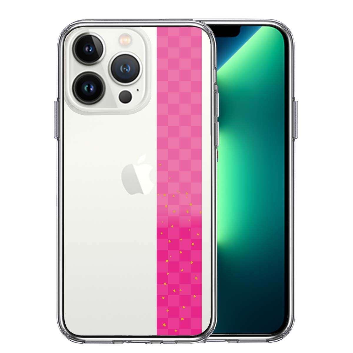 iPhone13 Pro 側面ソフト 背面ハード ハイブリッド クリア ケース 和柄 帯 市松模様 ピンク 金箔
