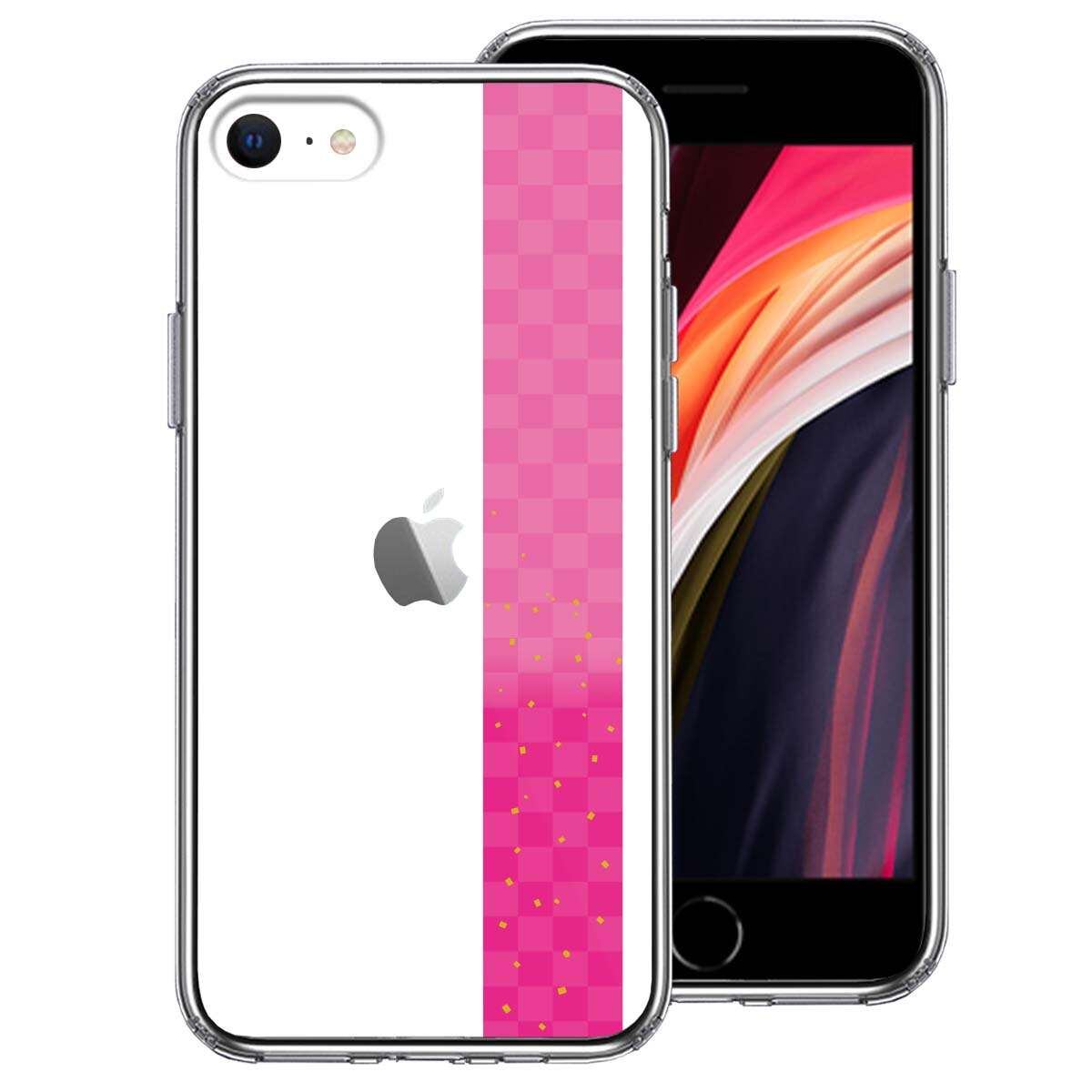 iPhoneSE(第3 第2世代) 側面ソフト 背面ハード ハイブリッド クリア ケース 和柄 帯 市松模様 ピンク 金箔