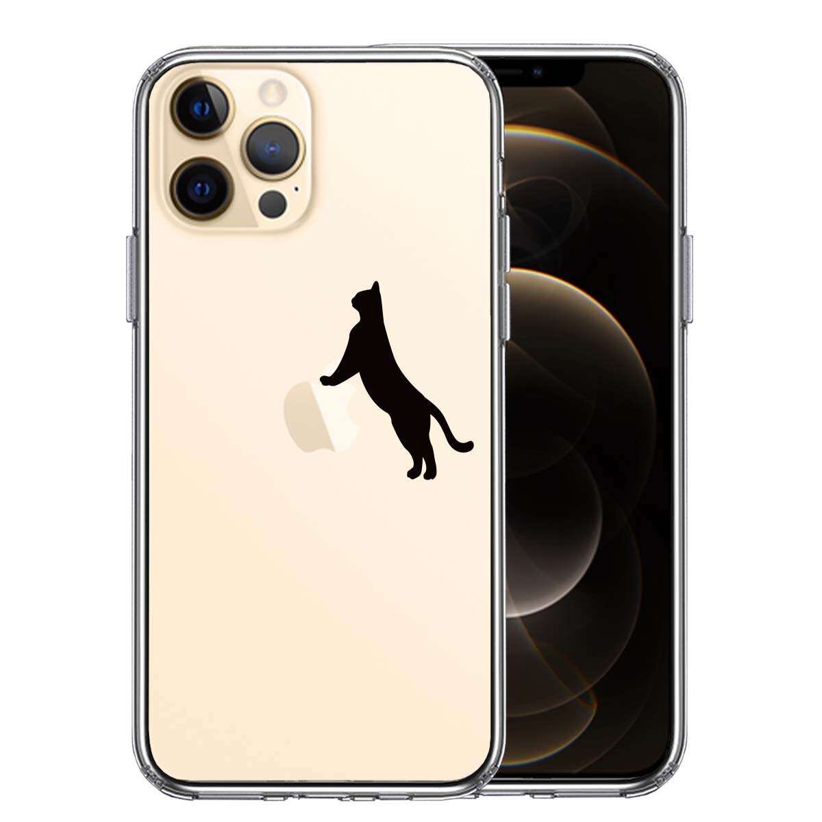 iPhone12 Pro 側面ソフト 背面ハード ハイブリッド クリア ケース ねこ 猫 リンゴで伸び