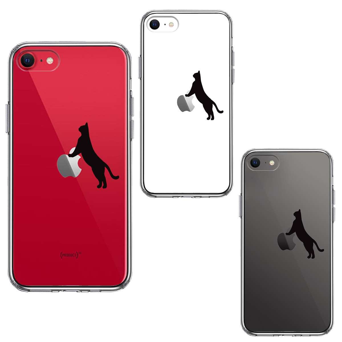 iPhoneSE(第3 第2世代) 側面ソフト 背面ハード ハイブリッド クリア ケース ねこ 猫 リンゴで伸び