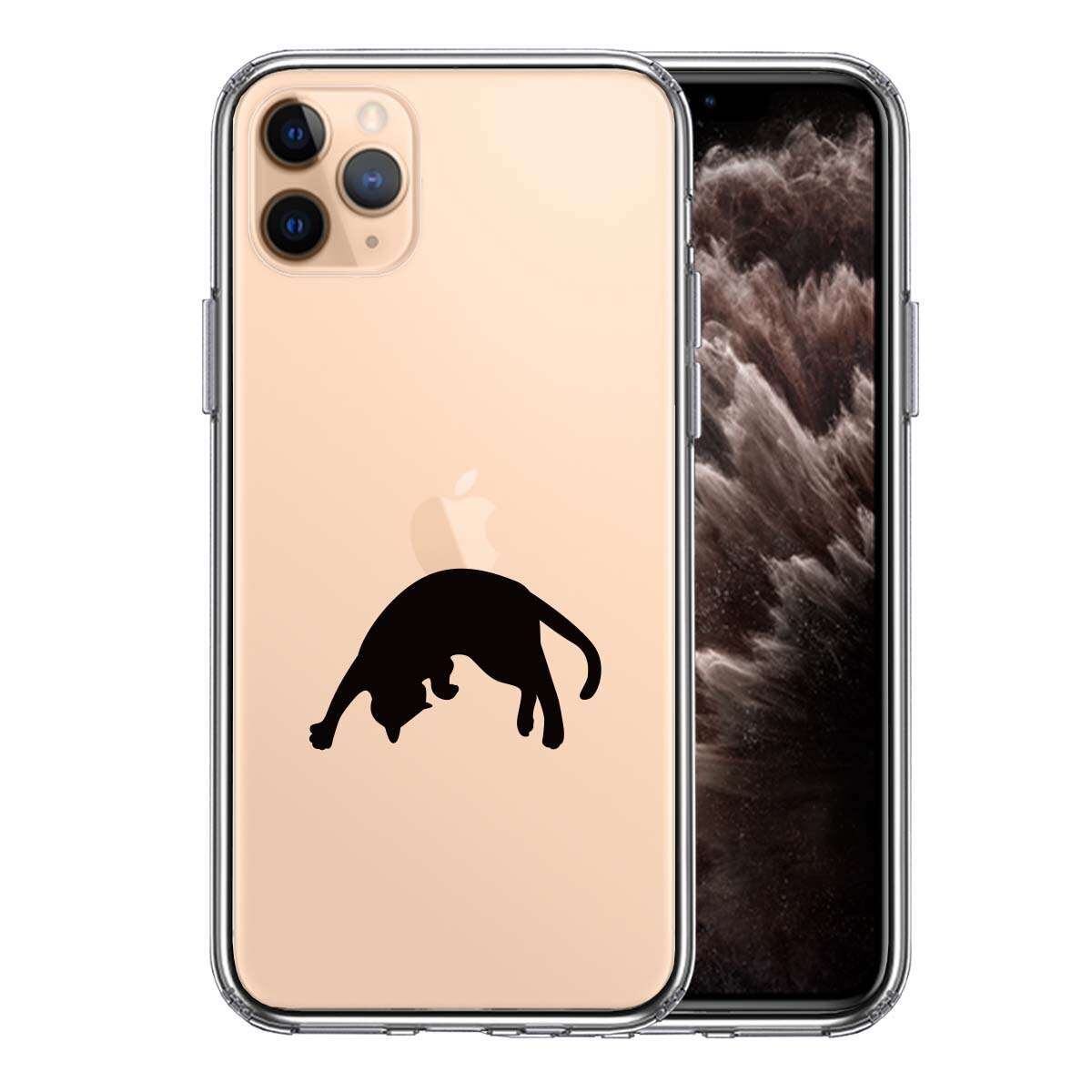 iPhone11pro 側面ソフト 背面ハード ハイブリッド クリア ケース ねこ 猫 リンゴを乗せてみる