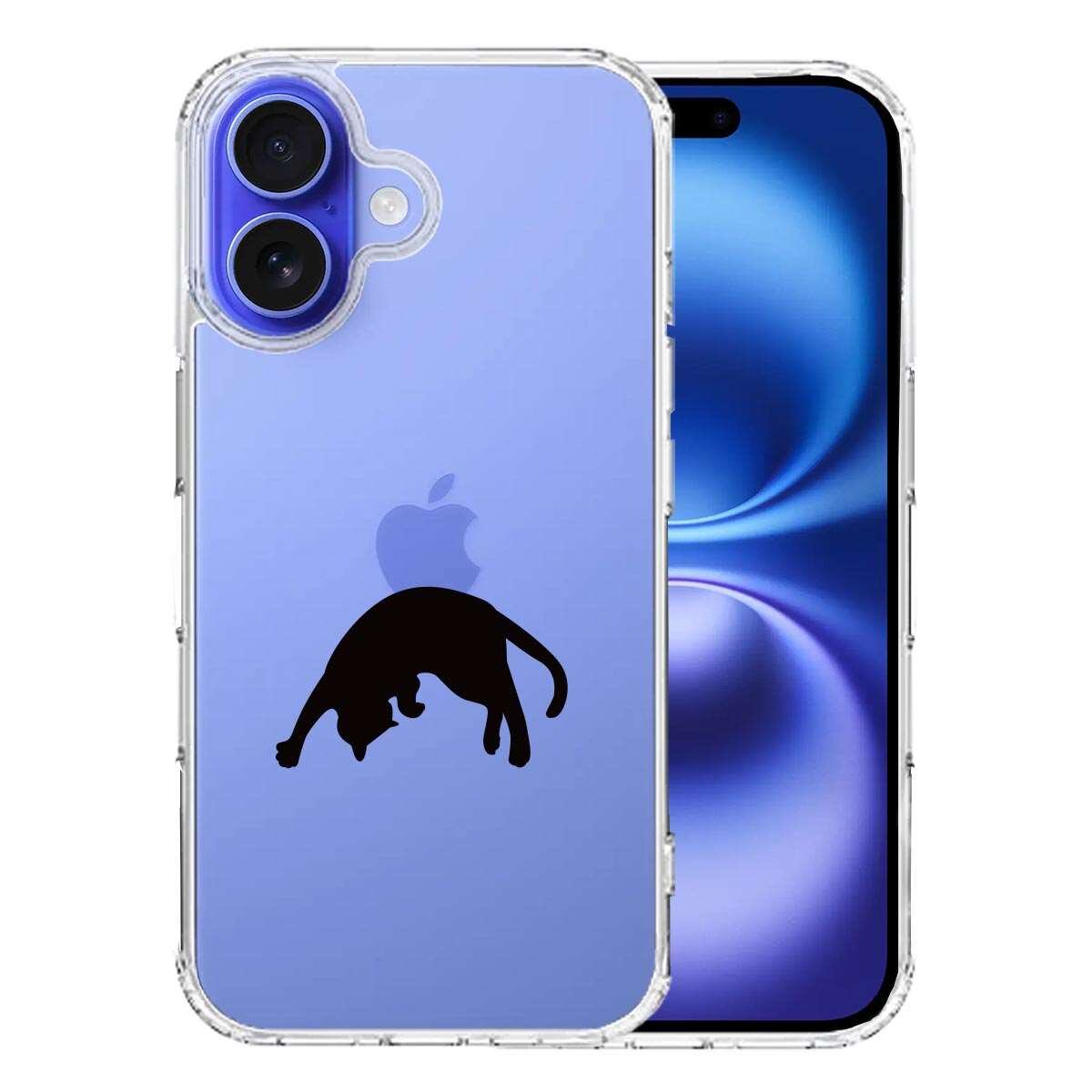 iPhone16 側面ソフト 背面ハード ハイブリッド クリア ケース ねこ 猫 リンゴを乗せてみる