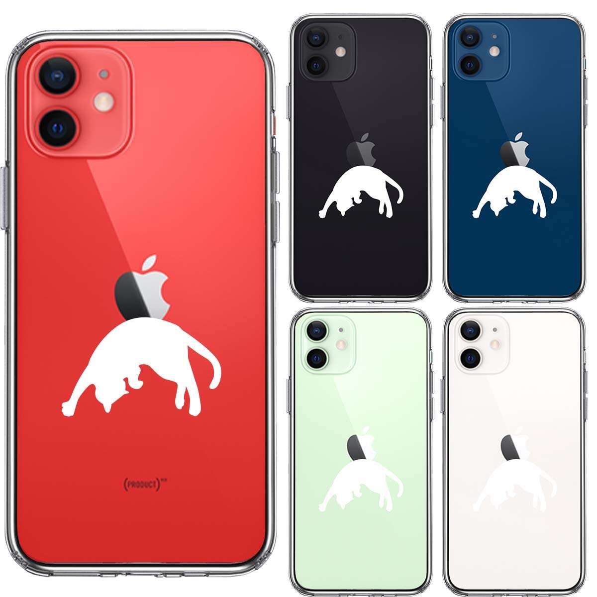 iPhone12 側面ソフト 背面ハード ハイブリッド クリア ケース ねこ 猫 リンゴを乗せてみる ホワイト